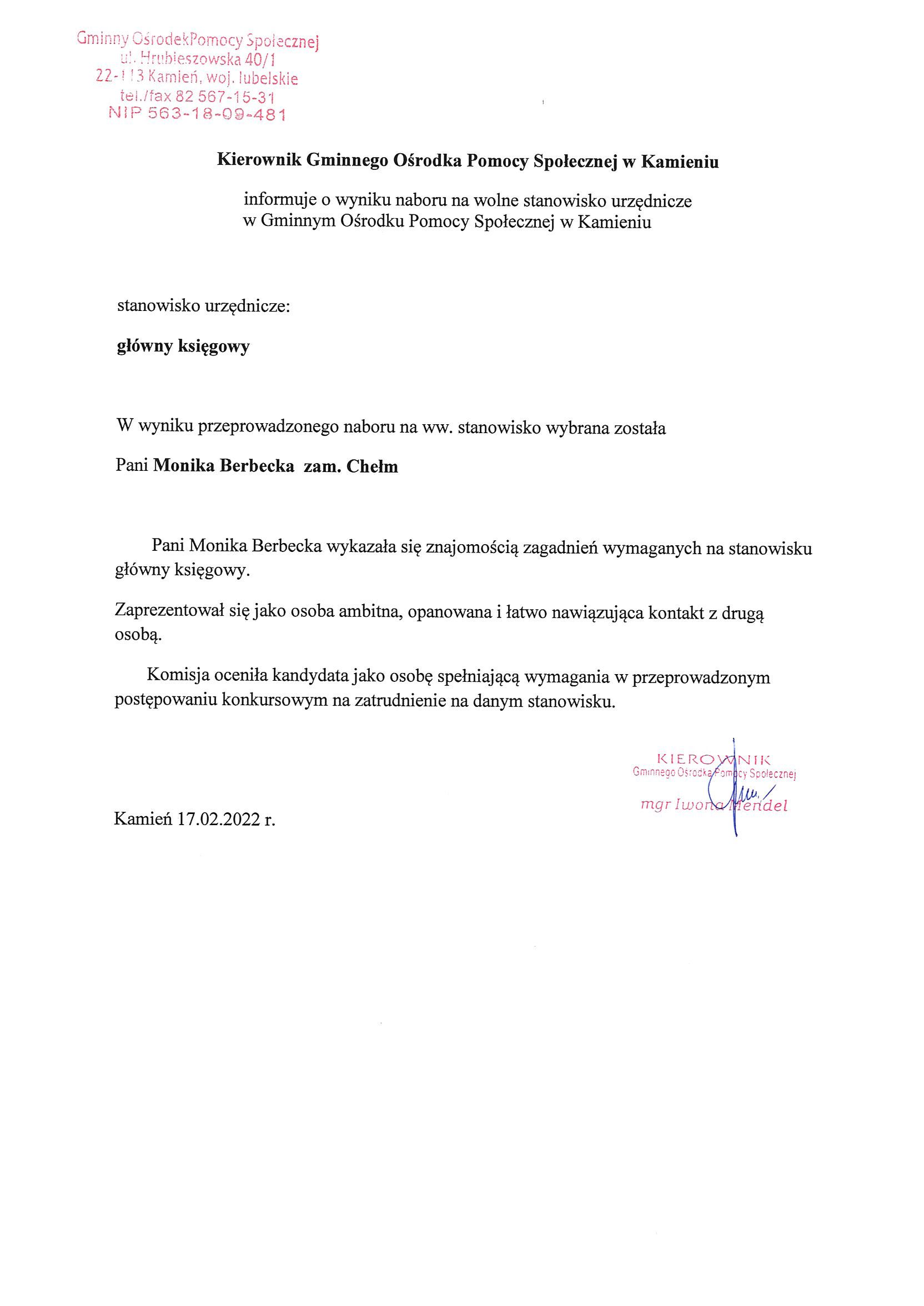 Gminny Ośrodek Pomocy Społecznej Hrubieszowska 40/1 22-113 Kamień